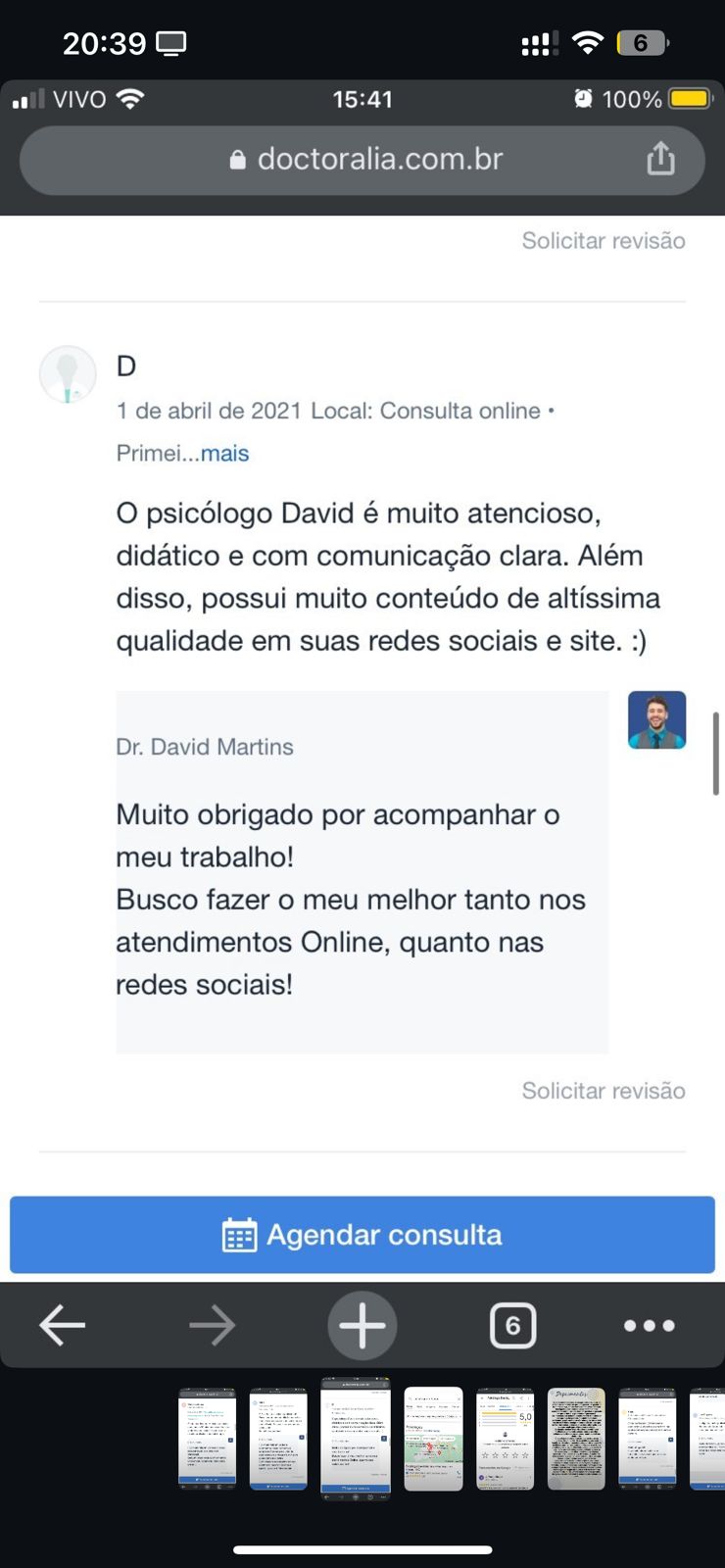 Psicólogo a 6 anos com ampla experiência em atendimentos clínico particular online e presencial. Já atendeu também pelo SUS, plano de saúde, escolas e empresas.
